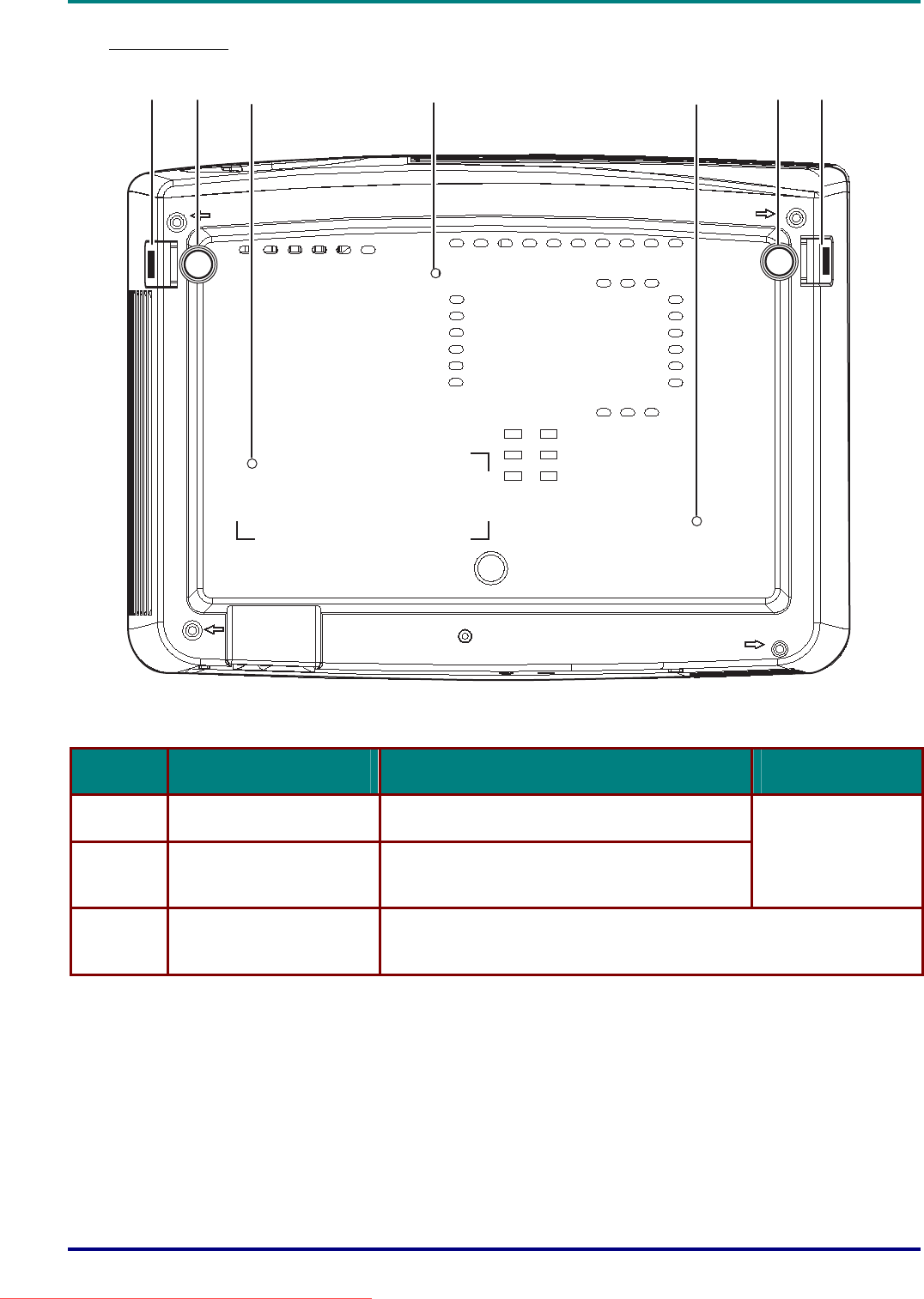 Ceiling support holes Contact your dealer for information on mounting the projector on a