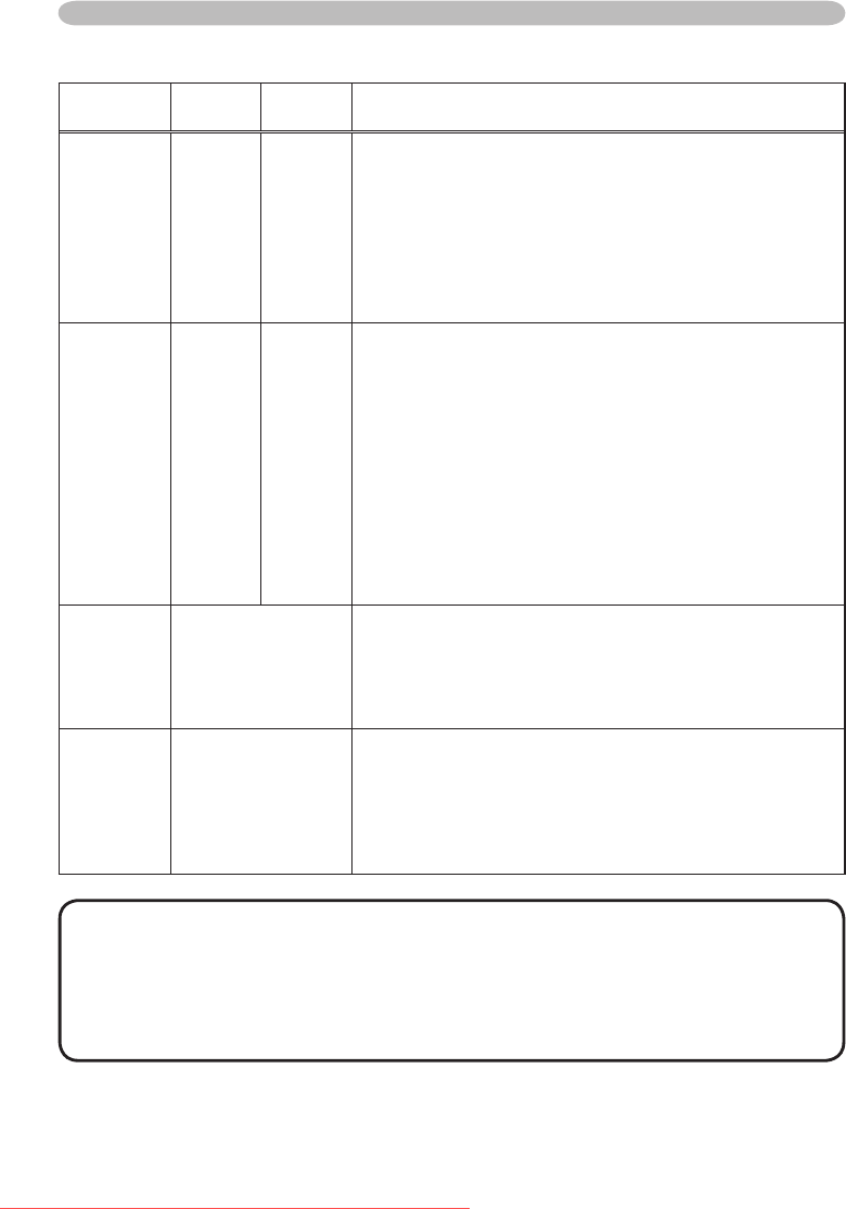 Regarding the indicator lamps (continued)