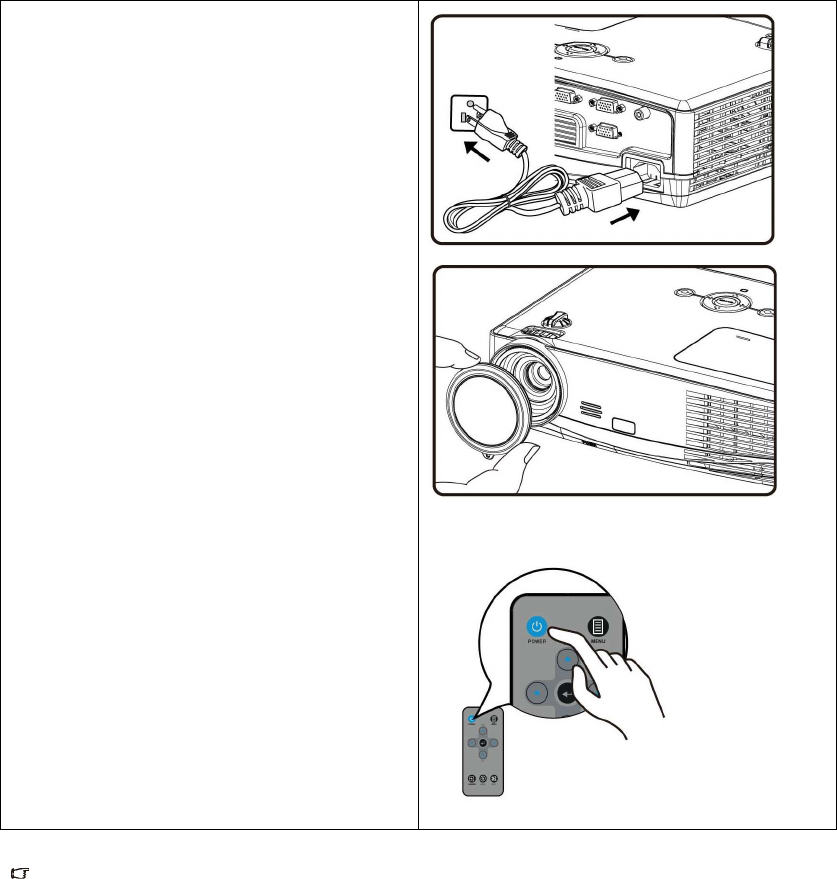 If the projector is still hot from previous activity, it will run the cooling fan for approximately 90 seconds before